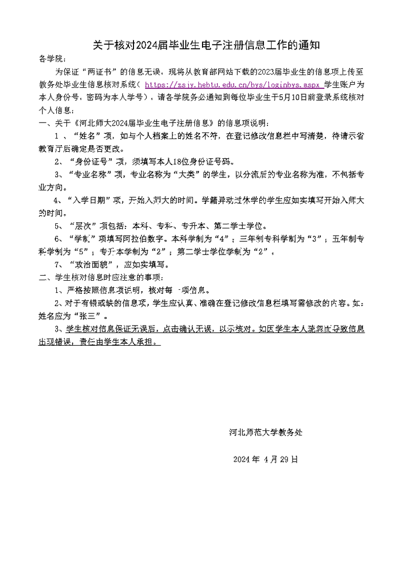 关于核对2024年毕业生电子注册信息的通知