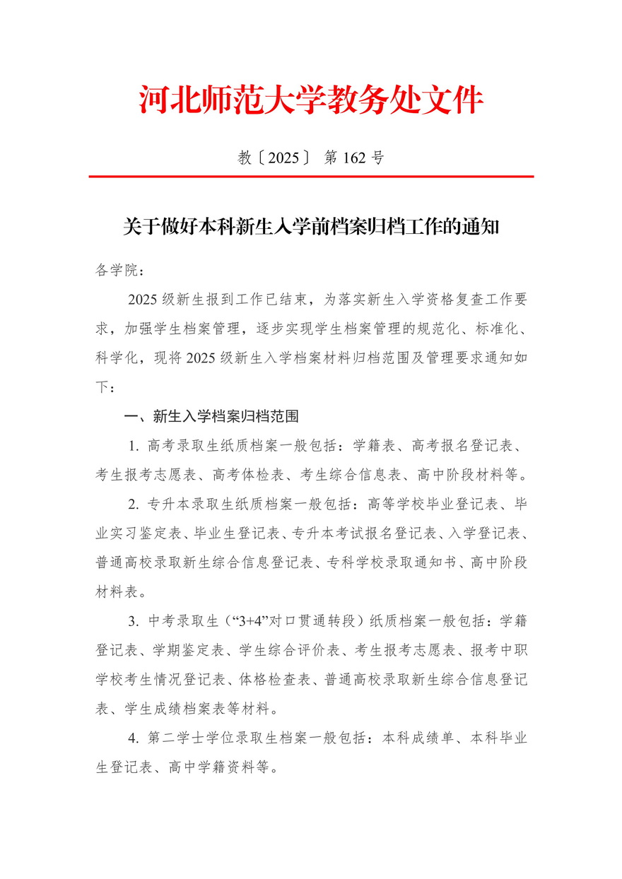 关于做好本科新生入学前档案归档工作的通知