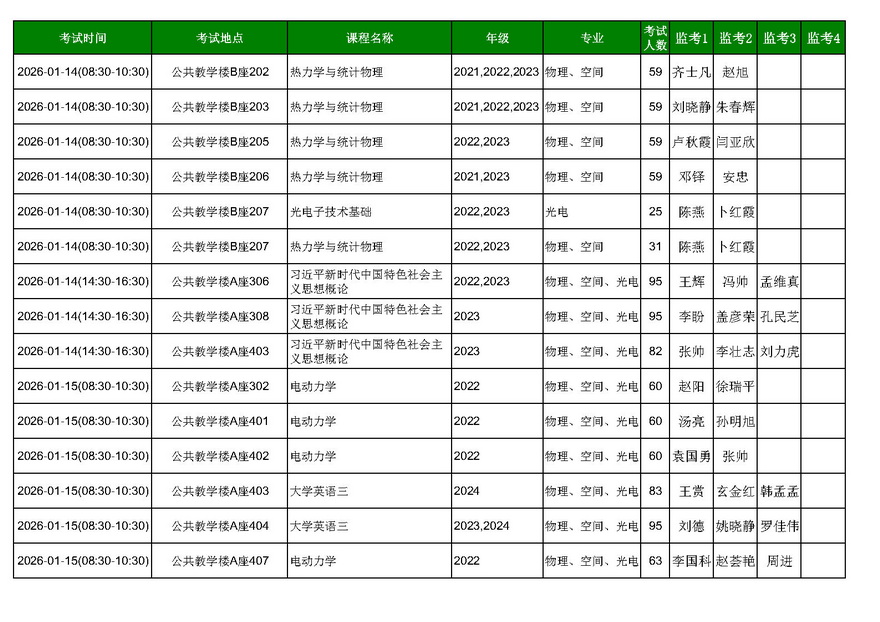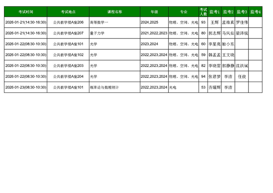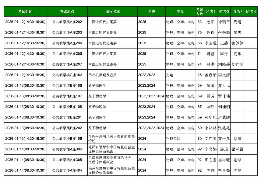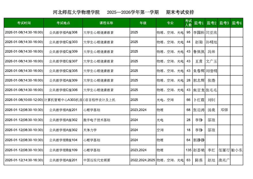 金沙以诚为本赢在信誉2025—2026学年第一学期期末考试安排