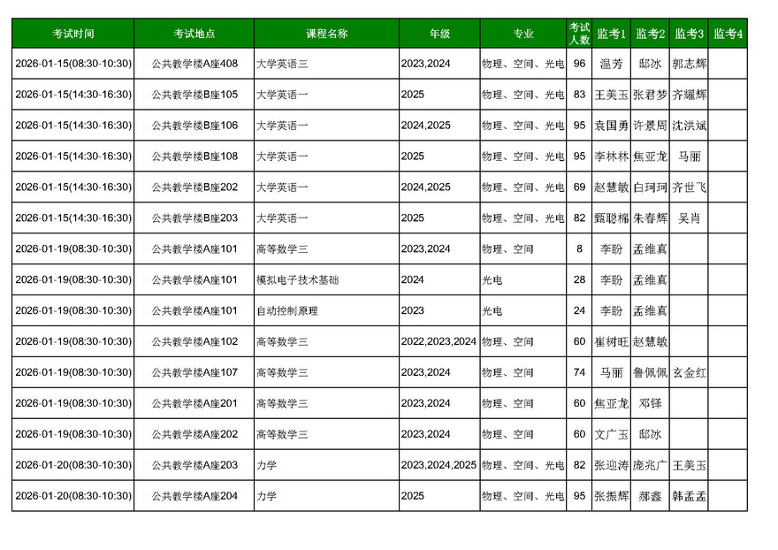 2025-2026学年第一学期期末考试命题通知