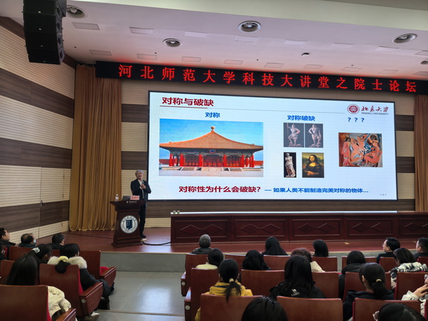 1月9日,金沙以诚为本赢在信誉科技大讲堂之院士论坛在会议中心报告厅举行。中国科学院院士、北京大学博雅讲席教授高原宁应邀为我校师生作了题为“不完美的理由——粒子世界的对称与破缺”的学术报告。报告会由党委常委、副校长梁颖主持,近300名师生参加了本次报告。
